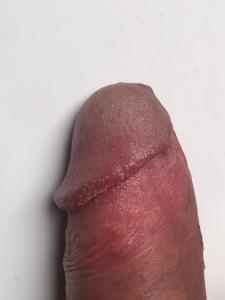 O aspecto no primeiro momento não é agradável, mas você deve cuidar e manter higienizado para que possa ocorrer uma boa cicatrização, caso você não seja circuncidado (cirurgia da fimose) a cicatrização será mais fácil também, você deixará a pele cobrindo toda a cabeça do seu pau.